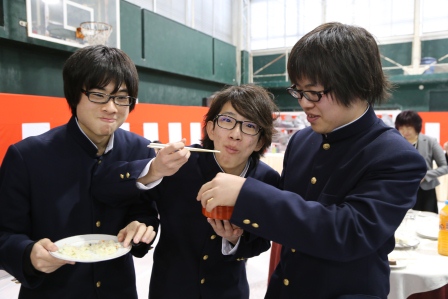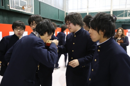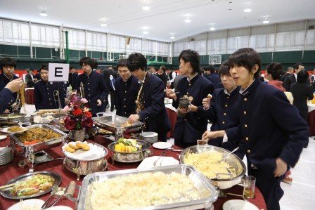 卒業生(先輩)が持ってくる料理に食らいつきます・・・